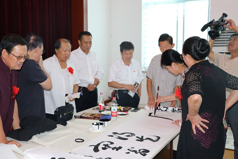 書畫展還邀請(qǐng)到了河北省毛體書法家協(xié)會(huì)主席韓振英、素有“毛澤東的手”之稱的演員王山城和多位省毛體書法家協(xié)會(huì)副主席前來(lái)參加。在展覽現(xiàn)場(chǎng),書法家們還現(xiàn)場(chǎng)揮毫潑墨,進(jìn)行了創(chuàng)作交流。