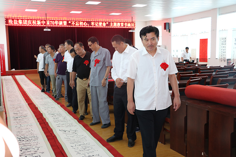 9月29日,公司黨委舉辦了慶祝新中國(guó)70華誕暨“不忘初心、牢記使命”主題教育書畫展。來(lái)自河北省各地的毛體書法愛(ài)好者齊聚一堂,揮毫潑墨寫下對(duì)新中國(guó)的祝福,還共同在百米長(zhǎng)卷上留下墨寶,合力推動(dòng)滄鹽企業(yè)文化發(fā)展。
