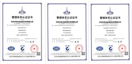 自去年投產(chǎn)以來,中鐵滄鹽科技創(chuàng)新喜報(bào)不斷,捷報(bào)頻傳,先后取得11項(xiàng)實(shí)用新型專利、3項(xiàng)發(fā)明專利、7項(xiàng)3A信用評價(jià)證書。繼2020年11月獲得河北省科學(xué)技術(shù)廳評選的河北省創(chuàng)新型中小企業(yè)的稱號后,通過積極的管理謀劃布局,2021年1月取得質(zhì)量體系、環(huán)境管理體系、職業(yè)健康三大體系ISO9001認(rèn)證;2021年8月通過了全國高新技術(shù)企業(yè)認(rèn)定管理工作領(lǐng)導(dǎo)小組評選,獲批河北省2021年第一批高新技術(shù)企業(yè)認(rèn)證。2021年9月,公司按照河北省工信廳被動(dòng)式超低能耗建筑產(chǎn)業(yè)項(xiàng)目的文件要求,深度研究政策要求、全面匯總編寫課題資料,通過了工信廳第三方專家技術(shù)評審和外部財(cái)務(wù)審計(jì)等工作,被順利列入河北省工信廳被動(dòng)式超低能耗建筑產(chǎn)業(yè)項(xiàng)目合格名單,納入政府資金滾動(dòng)支持項(xiàng)目庫。