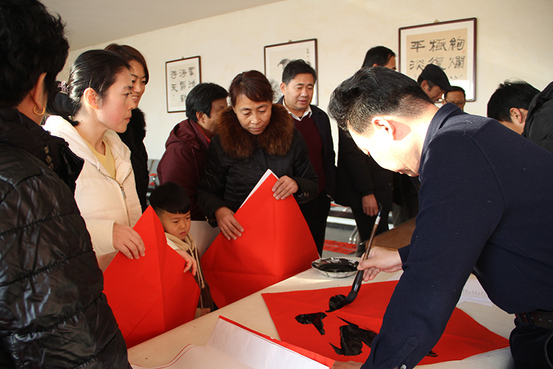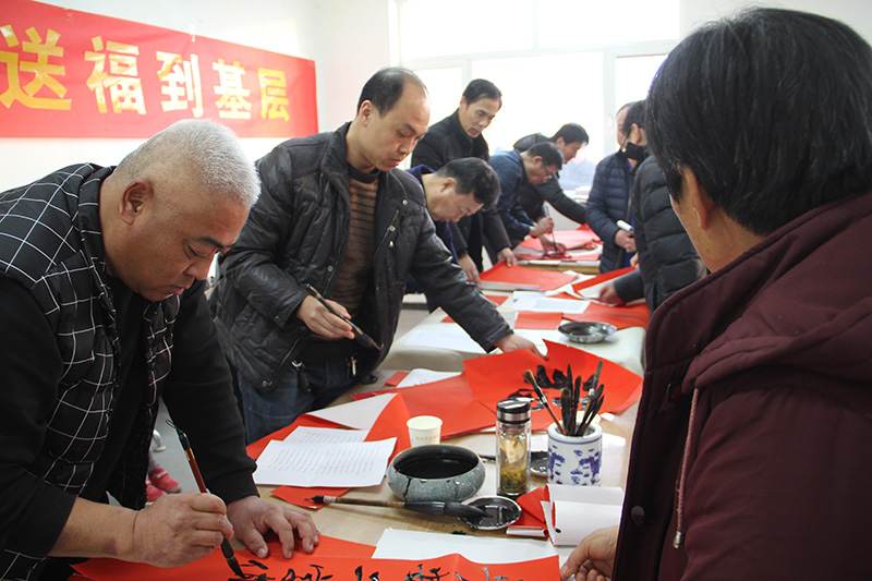 集團公司黨委委員、紀委書記狄彬親自帶領集團公司書法志愿者,分別在青鋒農(nóng)場和原二分場大院,進行了現(xiàn)場書寫,受到青鋒群眾及公司職工的歡迎。一幅幅喜慶的春聯(lián),一張張熱情的笑臉,伴隨著愉快的笑聲,活動現(xiàn)場充滿歡樂祥和的氣氛。