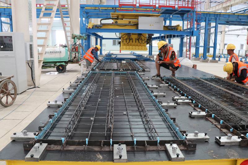 針對今年新冠肺炎疫情等諸多不利因素影響,中鐵滄鹽公司科學謀劃,倒排工期,一手抓疫情防控、一手抓復工生產(chǎn),在確保安全的前提下,于2月19日正式復工。在項目建設中,該公司堅持高標準、嚴要求,對每道建設工序和設備安裝環(huán)節(jié)都認真把關(guān);同時,搶抓工期,組織開展勞動競賽活動,晝夜突擊,公司各崗位干部職工恪盡職守,合理配置資源,強化管理,保證了項目建設進度。截至8月20日,已完成拌合站安裝調(diào)試、生產(chǎn)線設備調(diào)試、龍門吊安裝、堆場建設、人員培訓、工序演練、產(chǎn)品試驗等工作;辦公樓、宿舍樓業(yè)已封頂,預計入冬前可投入使用。目前,中鐵滄鹽公司正加大試生產(chǎn)力度,抓緊進行各種PC構(gòu)的試生產(chǎn)。經(jīng)檢測,現(xiàn)已生產(chǎn)完成的100余立方米各類構(gòu)件全部合格。