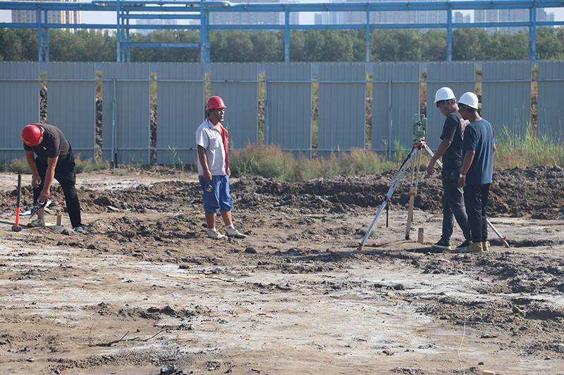 自5月份取得各項施工資質(zhì)后,建筑工程公司便積極參與建筑市場的競爭,并于6月1日與河北啟邦機(jī)械制造有限公司簽訂了大口徑鋁鎂合金螺旋焊管1#檢測車間的施工合同。為了確保工程順利實施,建筑工程公司及時成立了項目籌建部,積極協(xié)助河北啟邦機(jī)械制造有限公司跑辦施工許可證,溝通工程相關(guān)事宜,并提前做好了路面硬化、項目部設(shè)置、防疫等工作。施工許可證辦結(jié)后,9月4日,安全、質(zhì)檢、測量等人員正式入駐施工現(xiàn)場,拉開了工程建設(shè)序幕。截至9月8日,已完成放線和打樁工作。目前,測量人員正在對因樁機(jī)震動造成放線點位的可能誤差進(jìn)行復(fù)線矯正,待復(fù)線完工后,將依次進(jìn)行開槽、基礎(chǔ)施工和鋼結(jié)構(gòu)施工。預(yù)計11月15日前完成全部工程施工。