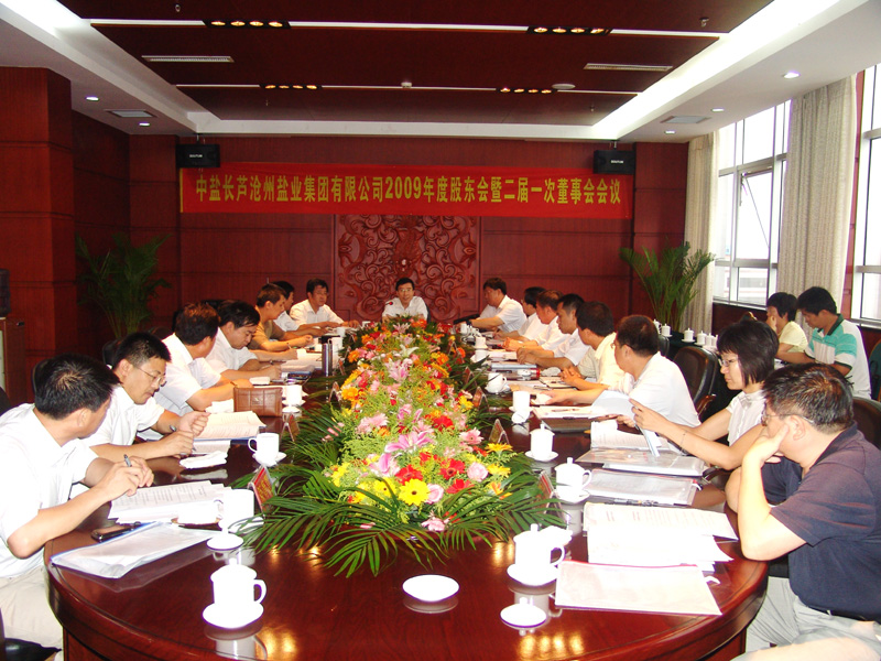 8月21日,公司召開了2009年度股東會暨第二屆董事會第一次會議,中鹽總公司黨委書記杜茂華,滄州市國資委主任、黨委書記李任放,滄州市建設(shè)投資公司總經(jīng)理鄧文忠及公司董事、監(jiān)事共17人參加了會議。