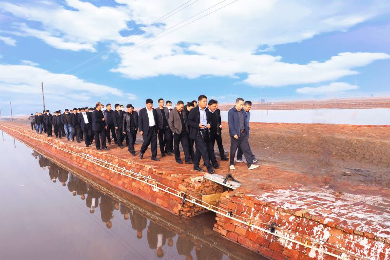 上午,與會人員集中乘車到長蘆公司儲鹵系統(tǒng)改造工程現(xiàn)場、26隊扒鹽現(xiàn)場、溴素擴能升級改造項目現(xiàn)場、建筑工程公司施工工地現(xiàn)場進行了現(xiàn)場觀摩,并聽取了所在單位負責人的現(xiàn)場介紹。黨委書記、董事長劉建軍對以上公司的工作給予充分肯定,并提出了指導性意見。
