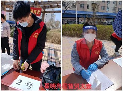 居家辦公的共產(chǎn)黨員陳玲、李國(guó)剛夫婦,主動(dòng)申請(qǐng)加入鹽場(chǎng)新區(qū)志愿服務(wù)隊(duì),兩人相互鼓勵(lì),并肩作戰(zhàn),積極配合醫(yī)務(wù)人員、社區(qū)工作人員做好信息核實(shí)登記、現(xiàn)場(chǎng)布置、發(fā)動(dòng)喊人、維持秩序、場(chǎng)地消毒、深夜照明等項(xiàng)工作,并主動(dòng)提供桌椅板凳以供檢測(cè)使用。