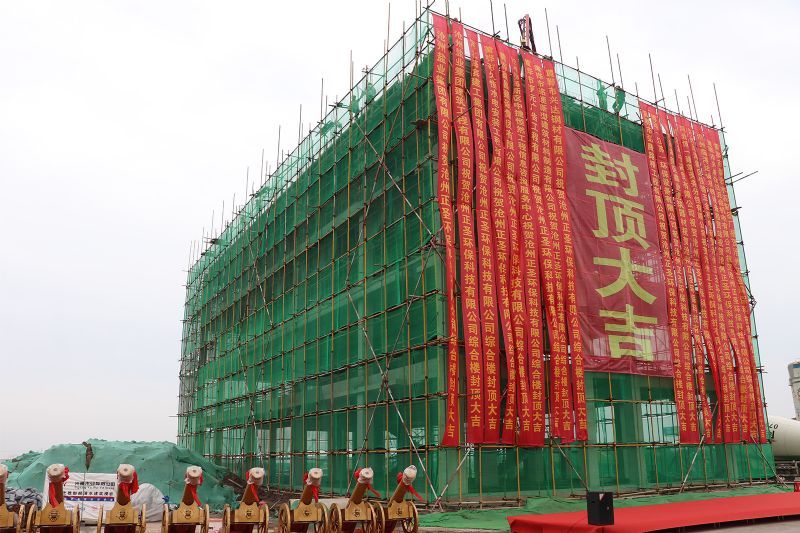 8月18日,滄州正圣環(huán)保公司項目施工現(xiàn)場人頭攢動,辦公大樓被一條條紅色標語裝點得格外喜慶。由建筑工程公司承建的正圣公司綜合辦公樓主體框架工程順利完成并舉行了封頂儀式。儀式由正圣環(huán)保公司董事長閆宗金主持。