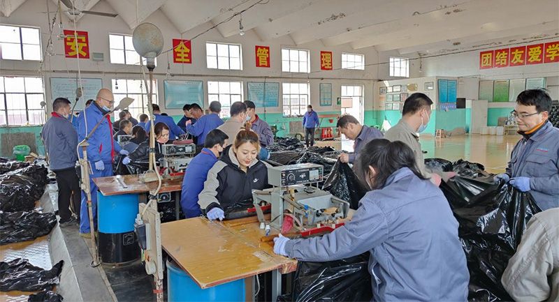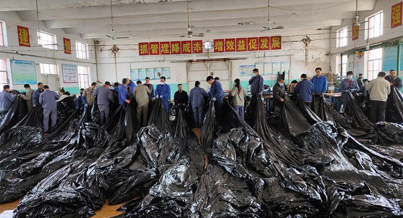 節(jié)日期間,工貿(mào)公司上下齊心協(xié)力,從班子、其他車間職工到工勤崗位全員出動,主動放棄休息,在保證安全生產(chǎn)和完善疫情防控的要求下,加班生產(chǎn)。為了降低職工勞動強(qiáng)度,技術(shù)研發(fā)部門通過多次改進(jìn),設(shè)計制造出了塑苫傳送裝置,大大節(jié)約了人力成本,提高了配送效率。