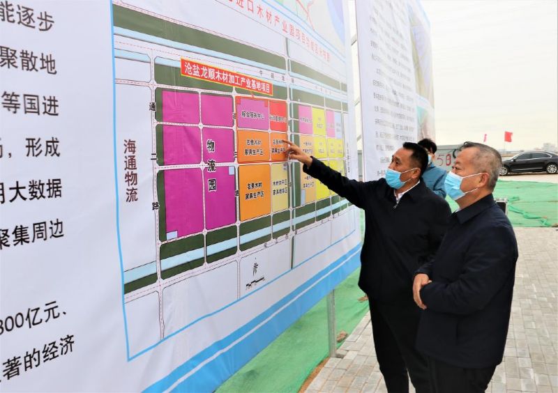 在滄鹽龍順木材加工產(chǎn)業(yè)基地,觀摩團現(xiàn)場聽取了華北進口木材產(chǎn)業(yè)園、滄鹽龍順木材加工產(chǎn)業(yè)基地項目概況。黨委書記、董事長劉建軍向?qū)m建軍詳細介紹了項目推動情況及下步總體推進計劃。宮建軍對滄鹽集團的項目建設(shè)工作給予了充分肯定,并表示,滄州渤海新區(qū)黃驊市將繼續(xù)大力支持滄鹽集團的各項工作,希望滄鹽集團進一步抓好招商引資和項目建設(shè)工作,為滄州渤海新區(qū)黃驊市的發(fā)展做出更大貢獻。