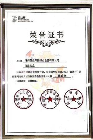 本次大賽由河北省文化和旅游廳、河北省工業(yè)和信息化廳、河北省商務(wù)廳聯(lián)合舉辦,自2022年4月開始啟動。為了提升公司產(chǎn)品影響力,提升品牌形象,銀山食鹽有限公司積極準(zhǔn)備,確定以滄鹽牌“海鹽禮盒”為參賽作品。宣傳部配合銀山公司精心準(zhǔn)備,專門派出姬曉曼全程參與設(shè)計(jì)和路演。初賽采取網(wǎng)絡(luò)投票、視頻介紹的方式進(jìn)行。滄鹽牌“海鹽禮盒”經(jīng)過層層選拔篩選,與其他7件作品從全市眾多參賽作品中脫穎而出,代表滄州市入圍河北省文創(chuàng)和旅游商品創(chuàng)意設(shè)計(jì)大賽決賽。2022年12月14日,第四屆河北省文創(chuàng)和旅游商品創(chuàng)意設(shè)計(jì)大賽決賽在石家莊以視頻會議加網(wǎng)絡(luò)直播的形式舉行,選手通過網(wǎng)絡(luò)進(jìn)行路演,評審線上進(jìn)行打分。最終,滄鹽牌“海鹽禮盒”榮獲河北省文創(chuàng)和旅游商品創(chuàng)意設(shè)計(jì)大賽優(yōu)秀獎、滄州市文創(chuàng)和旅游商品設(shè)計(jì)大賽創(chuàng)新創(chuàng)意獎。