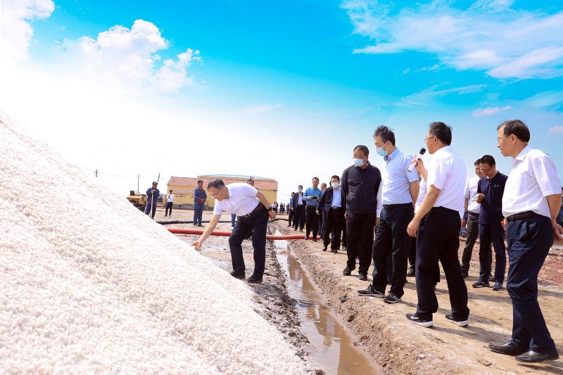 5月14日,國(guó)家發(fā)展改革委農(nóng)經(jīng)司司長(zhǎng)吳曉帶領(lǐng)財(cái)政部、農(nóng)業(yè)農(nóng)村部、自然資源部、水利部、生態(tài)環(huán)境部、林草局、中國(guó)科學(xué)院、中國(guó)農(nóng)科院多部委聯(lián)合調(diào)研組來(lái)公司調(diào)研,深入長(zhǎng)蘆公司詳細(xì)了解原鹽生產(chǎn)情況。河北省相關(guān)單位領(lǐng)導(dǎo),滄州市委常委,渤海新區(qū)黨工委書記、黃驊市委書記董鳴鏑,公司黨委書記、董事長(zhǎng)劉建軍,副總經(jīng)理文興峰陪同調(diào)研。