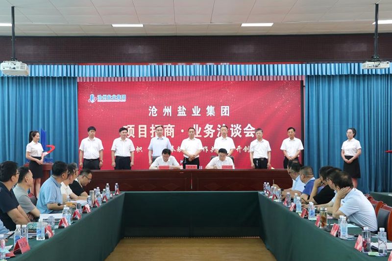 與會(huì)人員共同觀看了滄鹽集團(tuán)宣傳片。工作人員進(jìn)行了相關(guān)產(chǎn)業(yè)項(xiàng)目推介。中鐵二十局集團(tuán)華北區(qū)域指揮部總經(jīng)理李志勇、滄州銀行黃驊支行行長(zhǎng)皮建忠、中國(guó)市政工程?hào)|北院京津冀區(qū)域總經(jīng)理紀(jì)云公代表來賓進(jìn)行了致辭,表達(dá)了與滄鹽集團(tuán)進(jìn)一步加強(qiáng)合作、共創(chuàng)未來的強(qiáng)烈意愿。