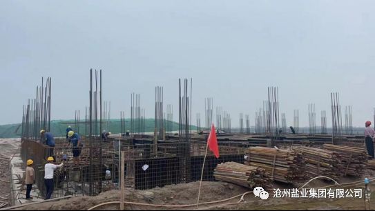 建筑工程公司立足公司內部,積極承攬外部施工,開拓外部市場,成功承接了滄州建新瑞祥化學科技有限公司—建新化工中控室項目建設工作。該項目建筑面積2434.3㎡,總造價563萬元,7月21日正式開槽作業(yè),并于7月29日凌晨,趕在臺風“杜蘇芮”到來前完成基礎筏板800余立方米混凝土的澆筑工作,再一次體現了“滄鹽速度”。