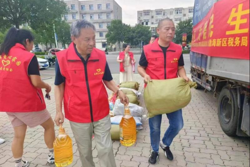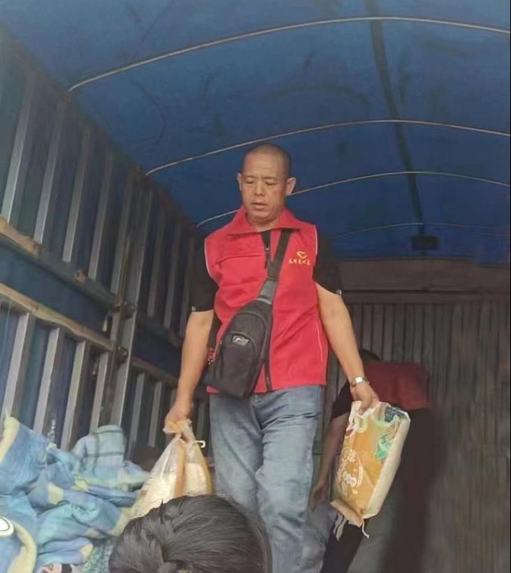 7月29日早晨5時,張元彬攜妻兒與所屬的渤海新區(qū)黃驊市港城區(qū)春暉志愿者團隊聯(lián)合渤海新區(qū)黃驊市紅色朝陽志愿者團隊,共計50余人驅(qū)車四百多公里前往保定淶源愛心互助家園,為當?shù)毓鹿牙先思皟和腿チ艘路�、被子、鞋、米、油、書包、筆等生活、學習物資必需物品。這是張元彬全家第三次去淶源山區(qū)進行志愿服務。