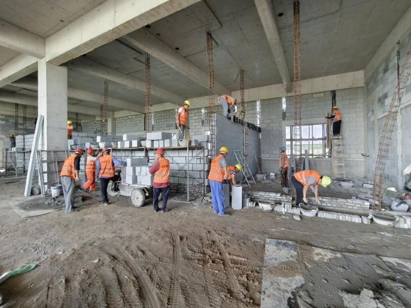 目前,該項目會議中心二次結構砌體工程以及二層至頂層也已全部完工,職工們正緊鑼密鼓地對會議中心一層進行砌筑施工,力爭9月下旬完成主體工程驗收。