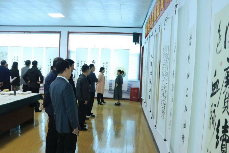 此次書畫展以習(xí)近平總書記的金句語錄和黨的二十大報告中的重要論述為主要內(nèi)容,以傳承和弘揚中國傳統(tǒng)書畫藝術(shù)為手段,以筆抒懷,用筆抒情,共計收到在職干部職工、退休干部職工作品40余幅,經(jīng)過嚴格篩選,共有28幅作品參加展覽。開展當日,吸引了100多名干部職工參觀學(xué)習(xí),部分書畫愛好者還現(xiàn)場揮毫潑墨,與干部職工共同交流創(chuàng)作心得。