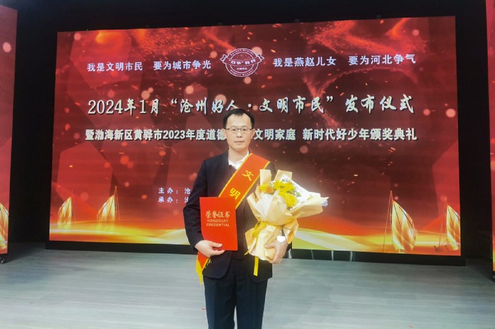 近日,渤海新區(qū)黃驊市2023年度道德模范、文明家庭評(píng)選結(jié)果揭曉,滄州鹽業(yè)集團(tuán)有限公司職工林剛家庭榮獲“渤海新區(qū)黃驊市文明家庭”稱號(hào),并于1月25日接受了表彰。