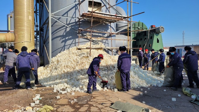 溴素二廠廠區(qū)南“吹出塔”始建于2017年,經過多年高強度運行,內部填充物“階梯環(huán)”腐蝕氧化嚴重,致使溴素生產過程中吸收效果大大降低。為進一步提高溴素吸收率,增強塔內綜合反應效果,保障溴素生產質量,溴素二廠全體干部職工于1月4日開始,啟動“吹出塔”填充物更換工作。在更換過程中,職工們協(xié)同作戰(zhàn),分工合作,僅用三天時間便完成了更換工作,比原計劃提前了兩天,為2024年溴素穩(wěn)產高產打下堅實基礎。