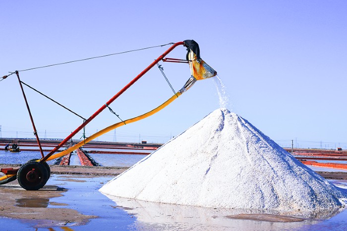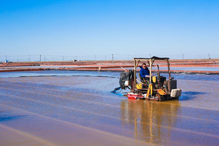青鋒公司鹽區(qū)四副灘同時開耙,扒鹽、活茬全部采用機械作業(yè)。目前,鹵水充足,每天可完成2個結(jié)晶池收鹽。