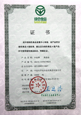 為申請(qǐng)綠色食品認(rèn)證,公司從去年開(kāi)始,投資2000多萬(wàn)元對(duì)食鹽生產(chǎn)工藝和設(shè)備進(jìn)行了技術(shù)改造,并努力加強(qiáng)食鹽生產(chǎn)各環(huán)節(jié)的管理,按照天然、營(yíng)養(yǎng)、優(yōu)質(zhì)的特定方式組織食鹽生產(chǎn),順利通過(guò)了綠色食品鑒定機(jī)構(gòu)的環(huán)境評(píng)價(jià)、產(chǎn)品檢測(cè),最終取得了中國(guó)綠色食品發(fā)展中心的認(rèn)證,于7月份領(lǐng)取了綠色食品證書。