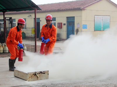 在模擬火災(zāi)現(xiàn)場,當(dāng)火災(zāi)發(fā)生后,演練指揮部接到險情立即下達(dá)了救援命令。救援隊伍分成兩個小分隊,第一小分隊對現(xiàn)場人員進行緊急疏散,并指導(dǎo)現(xiàn)場人員如何正確逃生。第二小分隊為救援小分隊,救援人員使用手提式干粉滅火器、手推式干粉滅火器及消防水籠一齊對準(zhǔn)著火點實施滅火。經(jīng)過大家的共同努力,現(xiàn)場火情很快得到控制。