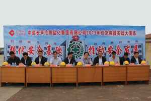 為加強(qiáng)對安全生產(chǎn)事故的防范,提高應(yīng)對突發(fā)安全生產(chǎn)事故的處置能力,6月18日,公司在溴素一廠舉行應(yīng)急救援實戰(zhàn)大演練。公司安委會成員、搶險突擊隊員及各單位黨政負(fù)責(zé)人、安全生產(chǎn)負(fù)責(zé)同志、安全員和各職能部室負(fù)責(zé)人等150多人現(xiàn)場進(jìn)行了觀摩演練。黃驊市副市長賈兆德、黃驊市安監(jiān)局局長孫進(jìn)也應(yīng)邀進(jìn)行了現(xiàn)場觀摩。