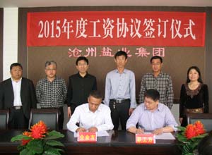 4月29日上午,公司舉行2015年度工資協(xié)議簽訂儀式,企業(yè)方首席代表、董事長劉建軍,職工方首席代表、工會主席李金營,分別在協(xié)議書上簽字。