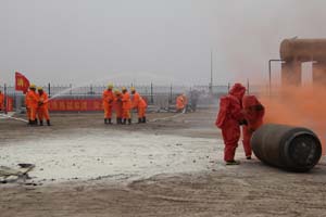下午2時30分,應(yīng)急救援演練正式開始。在模擬演練現(xiàn)場,演練人員秩序井然,按照演練步驟圓滿完成各項演練科目。演練過程中,現(xiàn)場解說員也隨機(jī)為觀摩人員進(jìn)行了細(xì)致的講解,宣傳了應(yīng)急救援注意事項及相關(guān)應(yīng)急常識,凸顯了演練實用化效果。現(xiàn)場演練結(jié)束后,舉辦了應(yīng)急演練技能比武活動,各參賽人員搶時間,比速度,按照要求正確穿戴空氣呼吸機(jī)和全封閉防化服,充分體現(xiàn)了搶險突擊隊員的整體素質(zhì)。整個演練過程歷時1小時30分鐘,既檢驗了處置突發(fā)事故的應(yīng)急能力,也發(fā)現(xiàn)了演練實施過程中出現(xiàn)的問題,為今后的實戰(zhàn)積累了寶貴的經(jīng)驗。