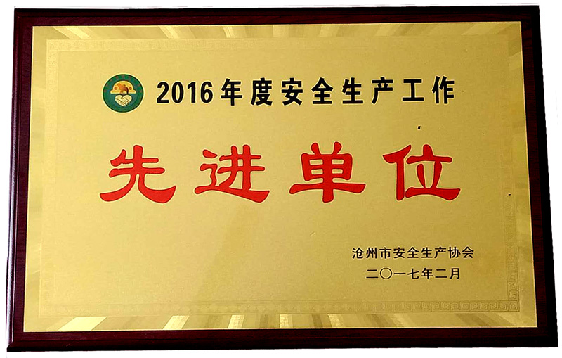 日前,公司被滄州市安全生產(chǎn)協(xié)會(huì)評為“2016年度安全生產(chǎn)工作先進(jìn)單位”。