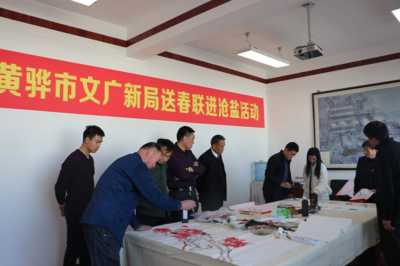 2月2日,黃驊市文廣新局組織本市6位知名書畫家到公司開展“送春聯(lián)·進(jìn)滄鹽”活動(dòng)。在活動(dòng)現(xiàn)場(chǎng),書畫家們潑墨揮毫、妙筆生花,不僅書寫了100余幅象征幸福團(tuán)圓的福字和春聯(lián),而且深情地描畫出象征富貴吉祥的“牡丹圖”等繪畫作品,營造出喜慶祥和的節(jié)日氛圍。