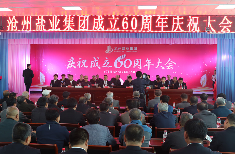六十年不懈奮進,六十年同甘共苦,六十年櫛風沐雨,六十年春華秋實。4月25日,公司領(lǐng)導班子成員、各單位負責人和機關(guān)全體人員與為公司建設(shè)發(fā)展作出突出貢獻的老領(lǐng)導、老職工代表共濟一堂,共同慶祝滄州鹽業(yè)集團有限公司成立60周年。大會由總經(jīng)理王銳主持。