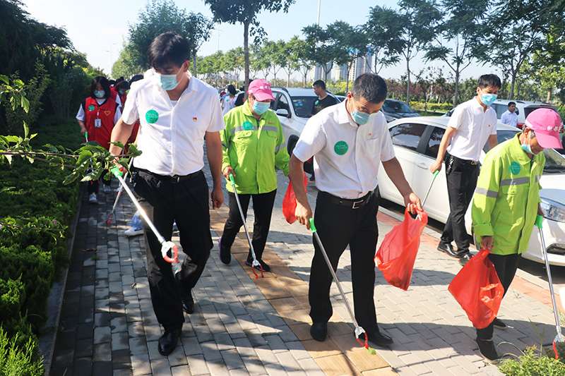 活動中,滄鹽志愿者們與黃驊市相關(guān)領(lǐng)導(dǎo)積極參與到文明黃驊撿拾垃圾活動,彰顯了滄鹽職工積極向上的良好風(fēng)貌。