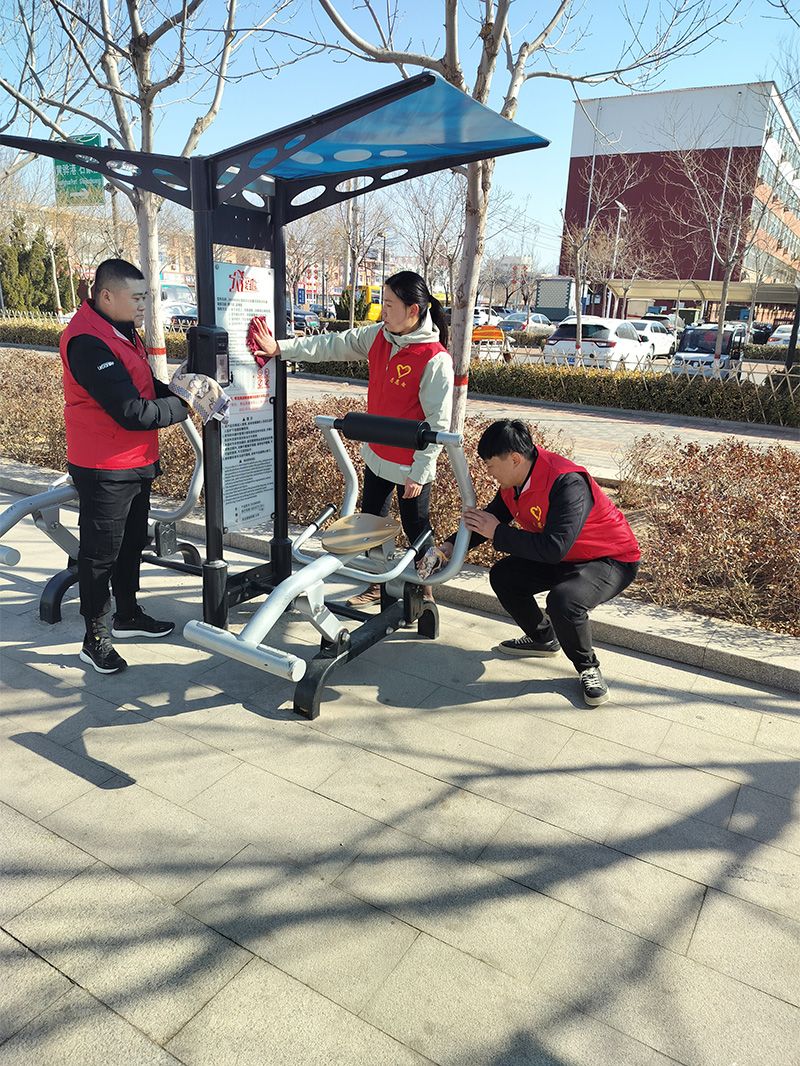 活動中,團員青年發(fā)揚不怕苦、不怕累的光榮傳統(tǒng),對廣場的健身器械全面擦拭、對花壇、綠化帶、人行道的垃圾、煙頭全面清理,不放過一個死角。